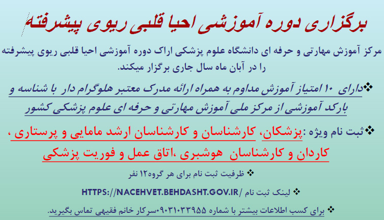 اطلاعیه برگزاری دوره آموزشی احیا قلبی ریوی پیشرفته ۰۸ مهر ۱۴۰۲ | ۱۰:۲۰ کد : ۳۷۹۸۷ اطلاعیه ارسال به دیگران نام شما ایمیل شما ایمیل دریافتکننده ارسال انصراف تعداد بازدید:۱۶۸۱۵