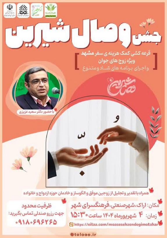 "جشن وصال شیرین" با هدف الگوسازی برای ازدواج آسان جوانان، با سخنرانی دکتر عزیزی برگزار می گردد.