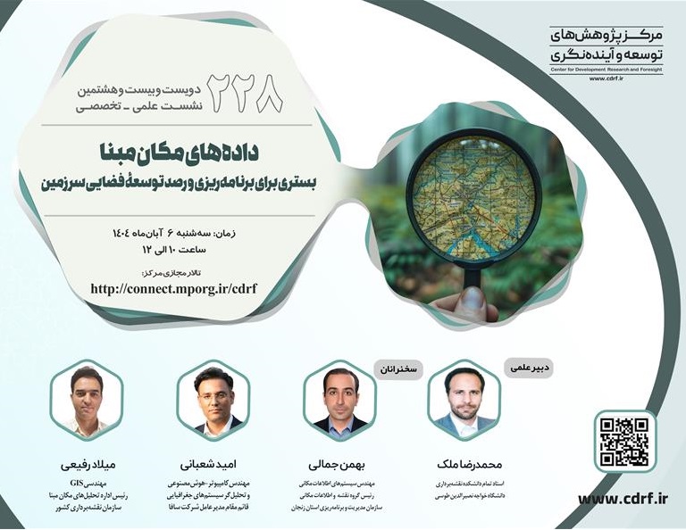دویست و بیست وهشتمین نشست علمی تخصصی داده های مکان مبنا، بستری برای برنامه ریزی و رصد توسعه فضایی سرزمین